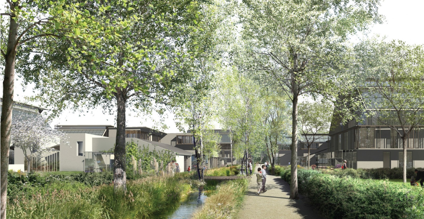 Alternative à l’étalement urbain, le projet articule densité résidentielle maîtrisée et espaces agricoles. Il revisite l’espace public résidentiel autour du concept de courées urbaines (espace semi-privatif).