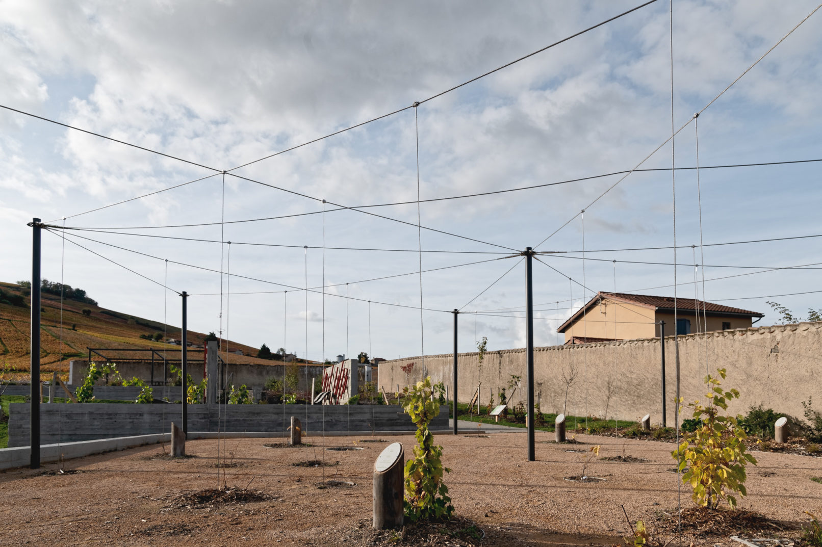 A travers un parcours pédagogique, et avec un jeu de terrasses, le visiteur traverse des espaces qui illustrent la vigne sous toutes ces formes : différents types de conduites à travers le monde, vignes sauvages croissant sur des structures aériennes….